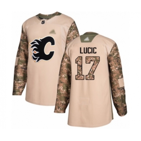 >Youth Calgary Flames #17 Milan Lucic Authentic Camo Veterans Day Practice Hockey Jersey