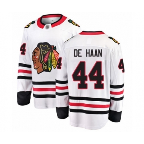 Youth Chicago Blackhawks #44 Calvin De Haan Authentic White Away Fanatics Branded Breakaway Hockey Jersey
