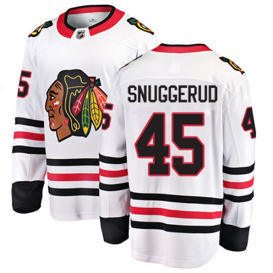 Home>NHL>Chicago Blackhawks>Luc Snuggerud>Youth Chicago Blackhawks #45 Luc Snuggerud Fanatics Branded White Away Breakaway NHL Jersey