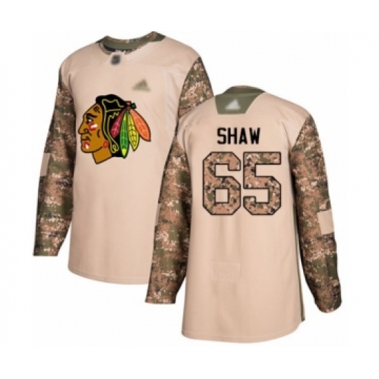 >Youth Chicago Blackhawks #65 Andrew Shaw Authentic Camo Veterans Day Practice Hockey Jersey