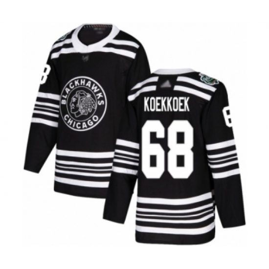 >Youth Chicago Blackhawks #68 Slater Koekkoek Authentic Black 2019 Winter Classic Hockey Jersey
