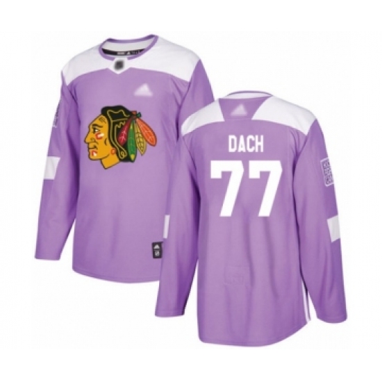 Men's Chicago Blackhawks #77 Kirby Dach Authentic Purple Fights Cancer Practice Hockey Jersey