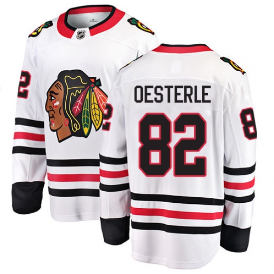 Home>NHL>Chicago Blackhawks>Jordan Oesterle>Youth Chicago Blackhawks #82 Jordan Oesterle Fanatics Branded White Away Breakaway NHL Jersey