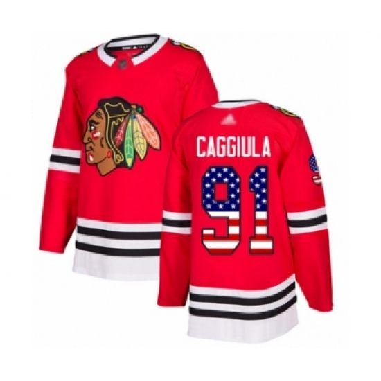 Youth Chicago Blackhawks #91 Drake Caggiula Authentic Red USA Flag Fashion Hockey Jersey