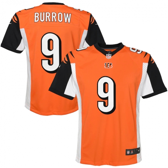 Youth Cincinnati Bengals #9 Joe Burrow Nike Orange 2020 NFL Draft First Round Pick Game Jersey.webp