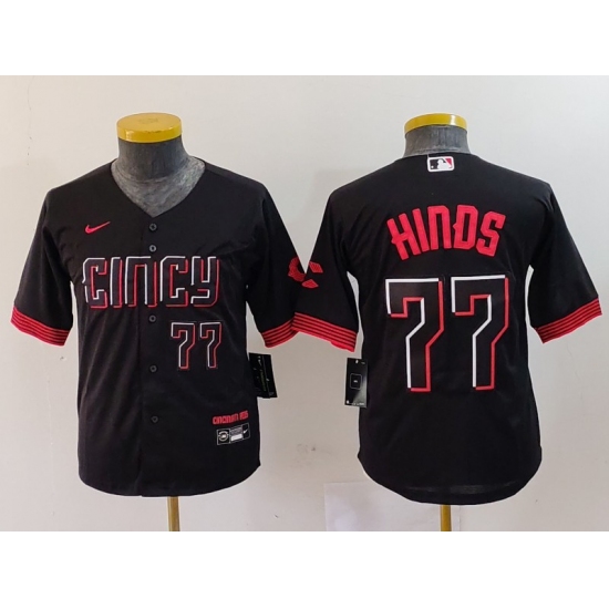>Youth Cincinnati Reds #77 Rece Hinds Number Black 2023 City Connect Cool Base Stitched Jersey