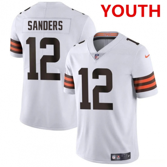 Youth Cleveland Browns #12 Shedeur Sanders White 2025 Vapor Limited Football Stitched Jersey