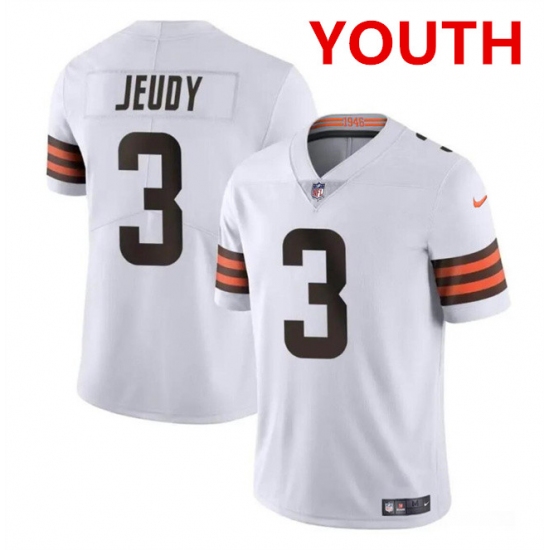 >Youth Cleveland Browns #3 Jerry Jeudy White Vapor Limited Stitched Football Jersey