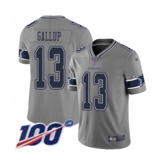 >Youth Dallas Cowboys #13 Michael Gallup Limited Gray Inverted Legend 100th Season Football Jersey
