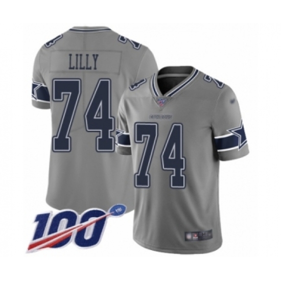 >Youth Dallas Cowboys #74 Bob Lilly Limited Gray Inverted Legend 100th Season Football Jersey