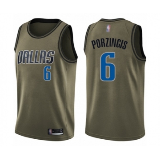 Youth Dallas Mavericks #6 Kristaps Porzingis Swingman Green Salute to Service Basketball Jersey