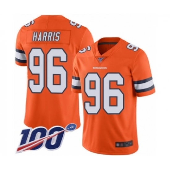 >Youth Denver Broncos #96 Shelby Harris Limited Orange Rush Vapor Untouchable 100th Season Football Jersey