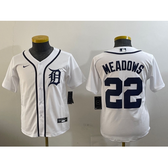 >Youth Detroit Tigers #22 Parker Meadows White Cool Base Stitched Jersey