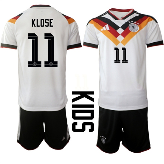 Youth Germany #11 KLOSE National Team FIFA x World Cup 2026 Home White On Field Kids Jersey