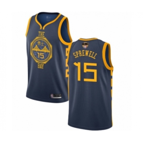 >Youth Golden State Warriors #15 Latrell Sprewell Swingman Navy Blue Basketball 2019 Basketball Finals Bound Jersey - City Edition