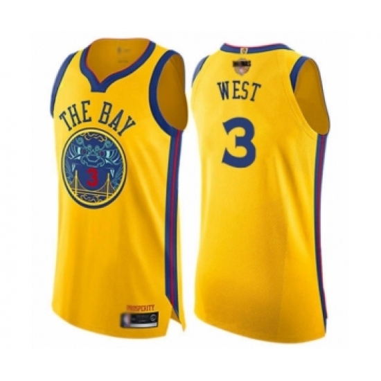 Men's Nike Golden State Warriors #3 David West Authentic Gold 2018 NBA Finals Bound NBA Jersey - City Edition
