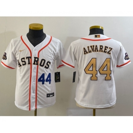 >Youth Houston Astros #44 Yordan Alvarez Number 2023 White Gold World Serise Champions Cool Base Stitched Jersey1