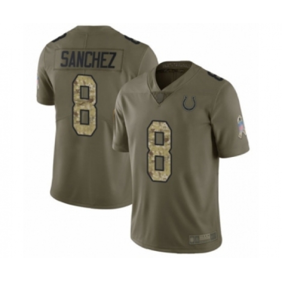 >Youth Indianapolis Colts #8 Rigoberto Sanchez Limited Olive Camo 2017 Salute to Service Football Jersey
