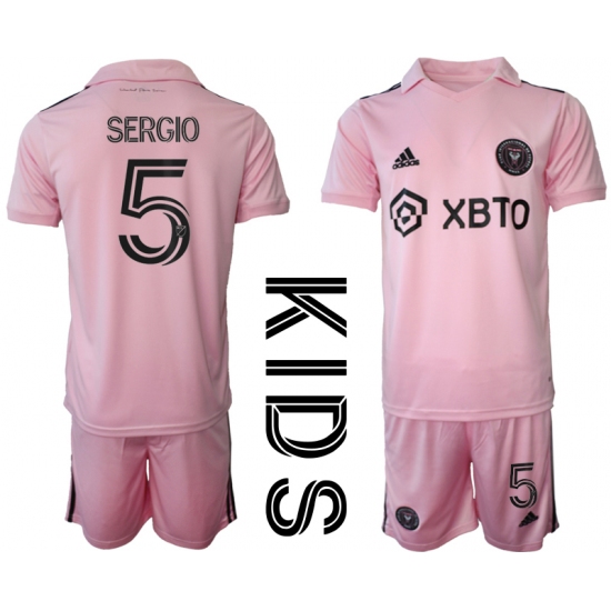 Youth Inter Miami CF #5 Sergio Pink Home Soccer Jersey