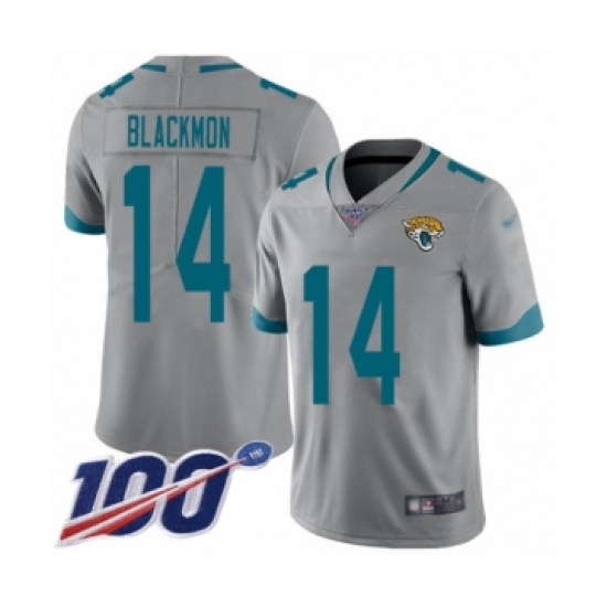 >Youth Jacksonville Jaguars #14 Justin Blackmon Silver Inverted Legend Limited 100th Season Football Jersey