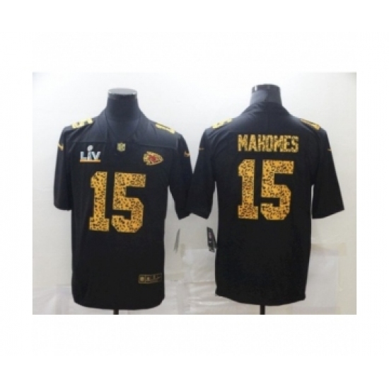 >Youth Kansas City Chiefs #15 Patrick Mahomes Black Leopard Super Bowl LV Jersey