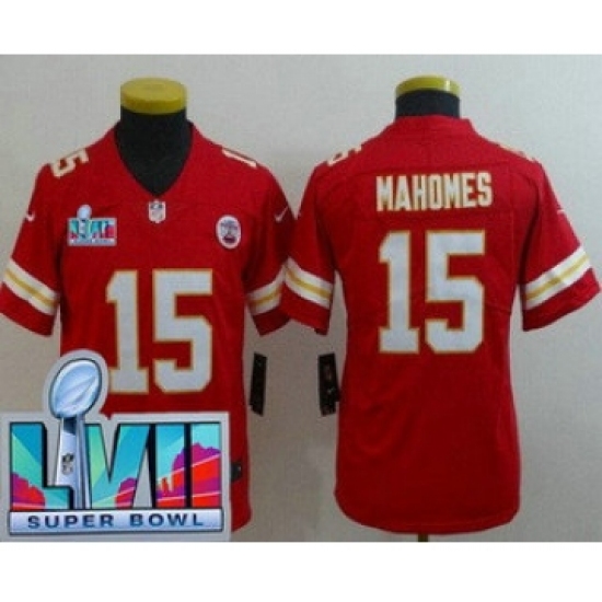 >Youth Kansas City Chiefs #15 Patrick Mahomes Limited Red Super Bowl LVII Vapor Jersey