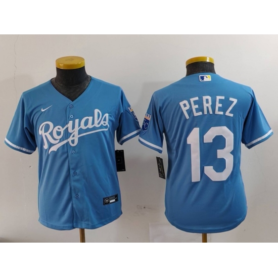 Youth Kansas City Royals #13 Salvador Perez Light Blue Cool Base Stitched Jersey