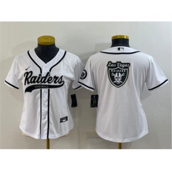 >Youth Las Vegas Raiders White Team Big Logo With Patch Cool Base Stitched Baseball Jersey