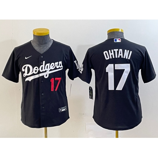 >Youth Los Angeles Dodgers #17 Shohei Ohtani Number Black Turn Back The Clock Stitched Cool Base Jersey