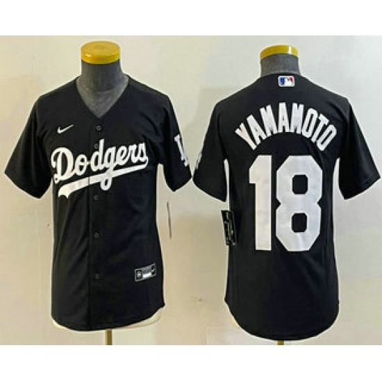 Youth Los Angeles Dodgers #18 Yoshinobu Yamamoto Black Turn Back The Clock Stitched Cool Base Jersey3