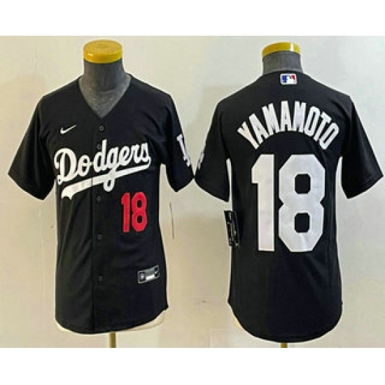 Youth Los Angeles Dodgers #18 Yoshinobu Yamamoto Number Black Turn Back The Clock Stitched Cool Base Jersey