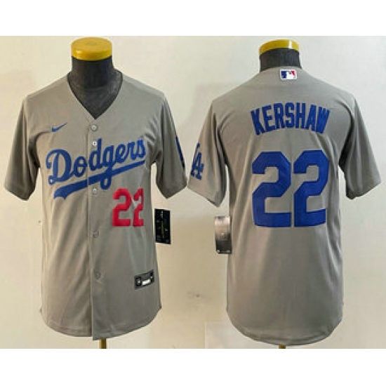 >Youth Los Angeles Dodgers #22 Clayton Kershaw Number Grey Stitched Cool Base Nike Jersey