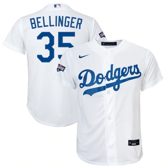 Youth Los Angeles Dodgers #35 Cody Bellinger Nike White 2020 World Series Champions Home Replica Player Jersey