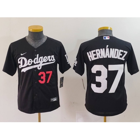 Youth Los Angeles Dodgers #37 Teoscar Hernandez Number Black Cool Base Stitched Jersey