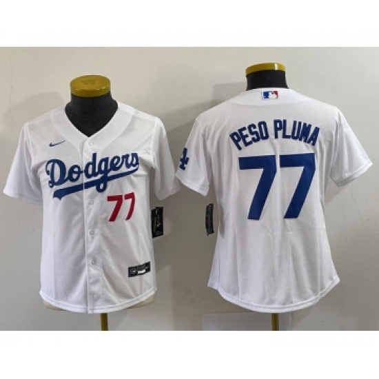 Youth Los Angeles Dodgers #77 Peso Pluma White Stitched Cool Base Nike Jersey