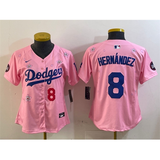 Youth Los Angeles Dodgers #8 Enrique Hernández Pink 2025 Tokyo Series Limited Stitched Baseball Jersey