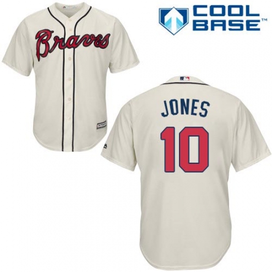 Home>MLB>Atlanta Braves>Chipper Jones>Youth Majestic Atlanta Braves #10 Chipper Jones Authentic Cream Alternate 2 Cool Base MLB Jersey