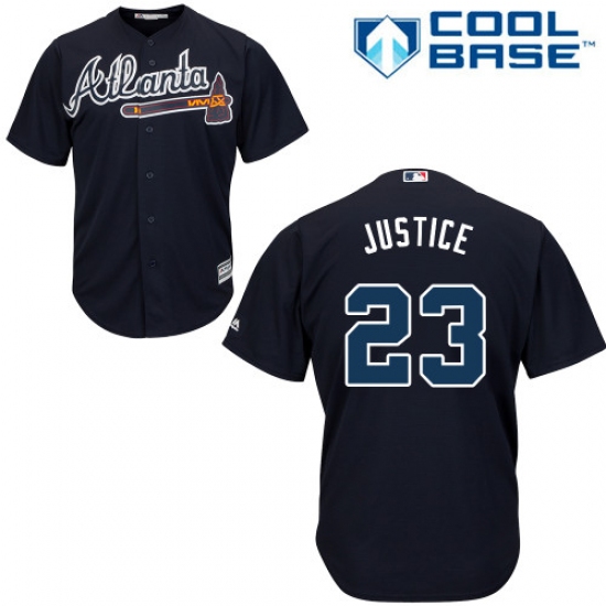 Home>MLB>Atlanta Braves>David Justice>Youth Majestic Atlanta Braves #23 David Justice Authentic Blue Alternate Road Cool Base MLB Jersey