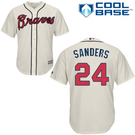 Youth Majestic Atlanta Braves #24 Deion Sanders Authentic Cream Alternate 2 Cool Base MLB Jersey