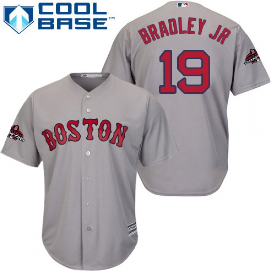 >Youth Majestic Boston Red Sox #19 Jackie Bradley Jr Authentic Grey Road Cool Base 2018 World Series Champions MLB Jersey