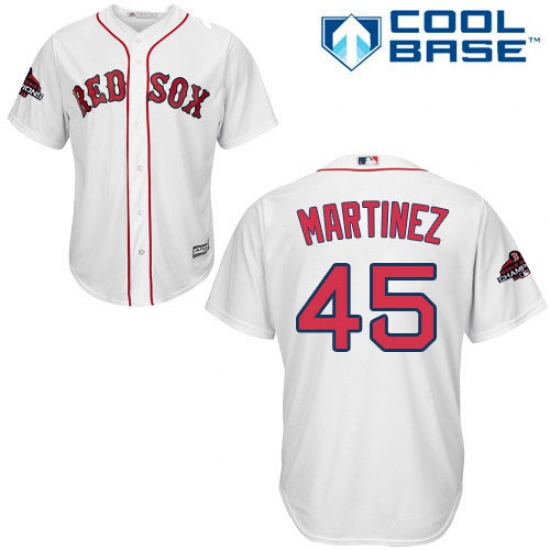 >Youth Majestic Boston Red Sox #45 Pedro Martinez Authentic White Home Cool Base 2018 World Series Champions MLB Jersey