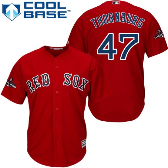 >Youth Majestic Boston Red Sox #47 Tyler Thornburg Authentic Red Alternate Home Cool Base 2018 World Series Champions MLB Jersey