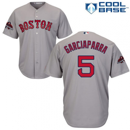 >Youth Majestic Boston Red Sox #5 Nomar Garciaparra Authentic Grey Road Cool Base 2018 World Series Champions MLB Jersey