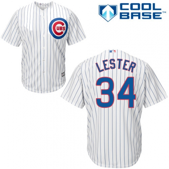 Home>MLB>Chicago Cubs>Jon Lester>Youth Majestic Chicago Cubs #34 Jon Lester Authentic White Home Cool Base MLB Jersey