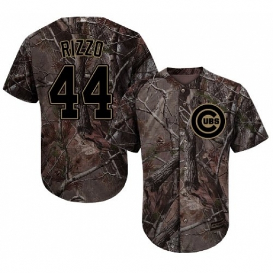 >Youth Majestic Chicago Cubs #44 Anthony Rizzo Authentic Camo Realtree Collection Flex Base MLB Jersey
