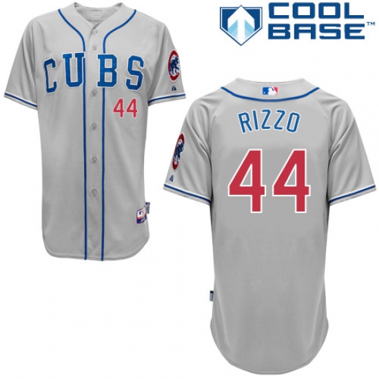 Home>MLB>Chicago Cubs>Anthony Rizzo>Youth Majestic Chicago Cubs #44 Anthony Rizzo Replica Grey Alternate Road Cool Base MLB Jersey
