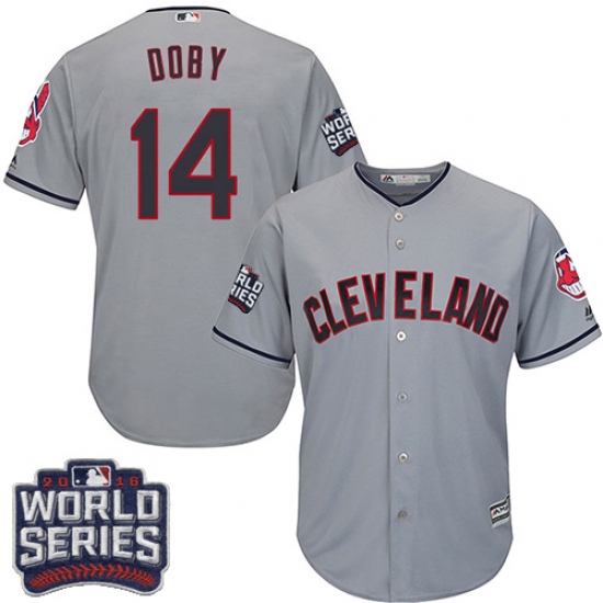 Home>MLB>Cleveland Indians>Larry Doby>Youth Majestic Cleveland Indians #14 Larry Doby Authentic Grey Road 2016 World Series Bound Cool Base MLB Jersey