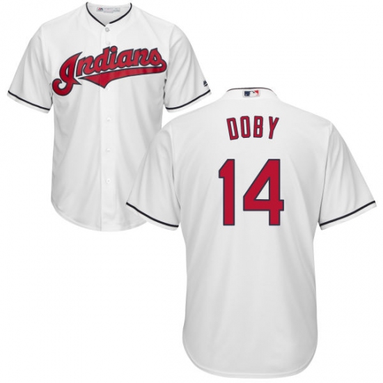 Youth Majestic Cleveland Indians #14 Larry Doby Replica White Home Cool Base MLB Jersey