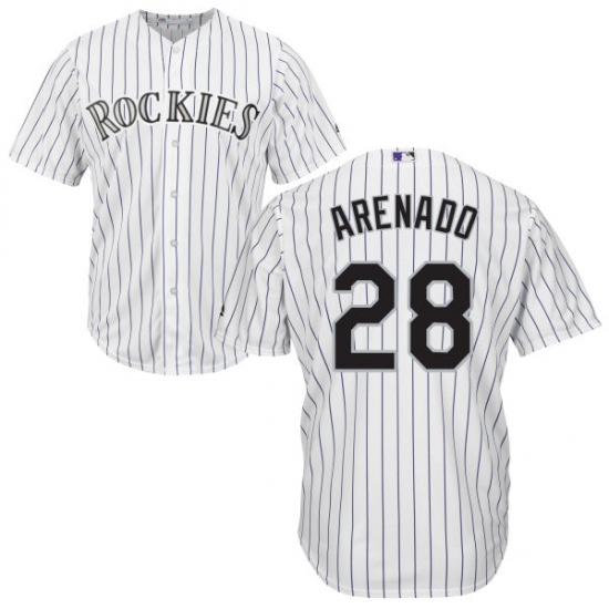 Home>MLB>Colorado Rockies>Nolan Arenado>Youth Majestic Colorado Rockies #28 Nolan Arenado Authentic White Home Cool Base MLB Jersey