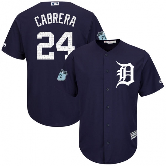 Home>MLB>Detroit Tigers>Miguel Cabrera>Youth Majestic Detroit Tigers #24 Miguel Cabrera Authentic Navy Blue 2017 Spring Training Cool Base MLB Jersey